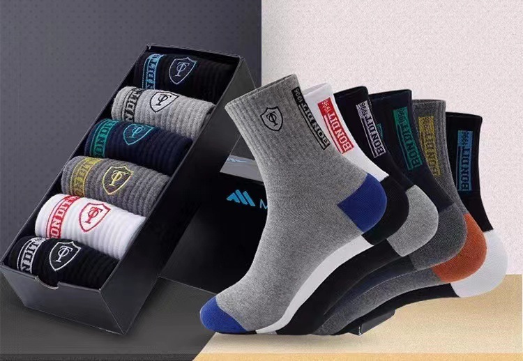 Autumn And Winter Men's Socks Solid Color Trophy Mid-Tube Socks Sweat Absorption Deodorant Breathable Sports Socks Fashion Trend Men's Business Socks